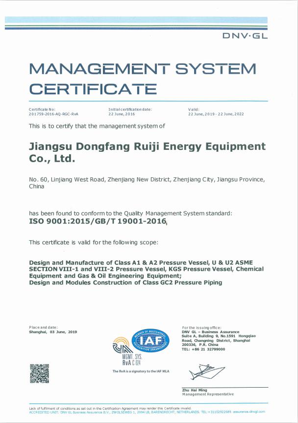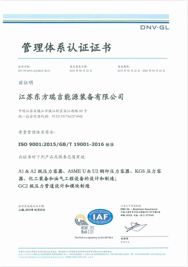 管理体系认证证书